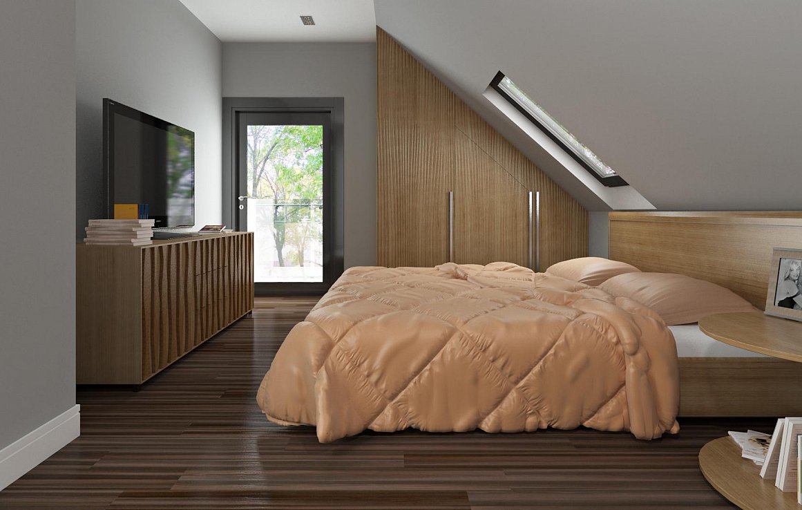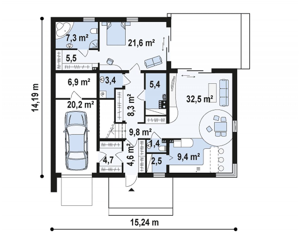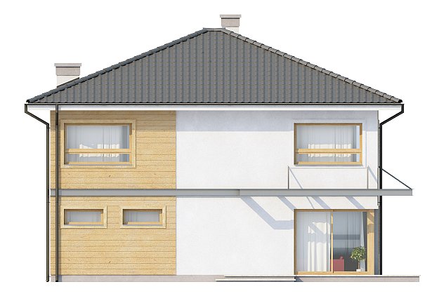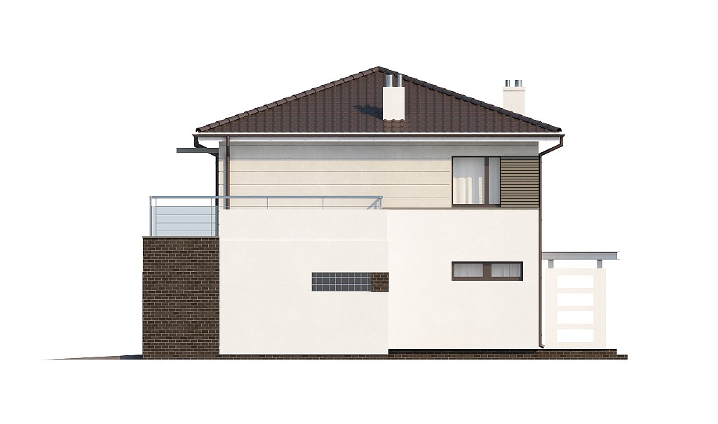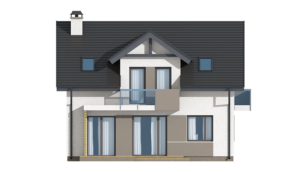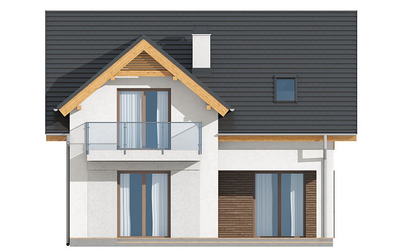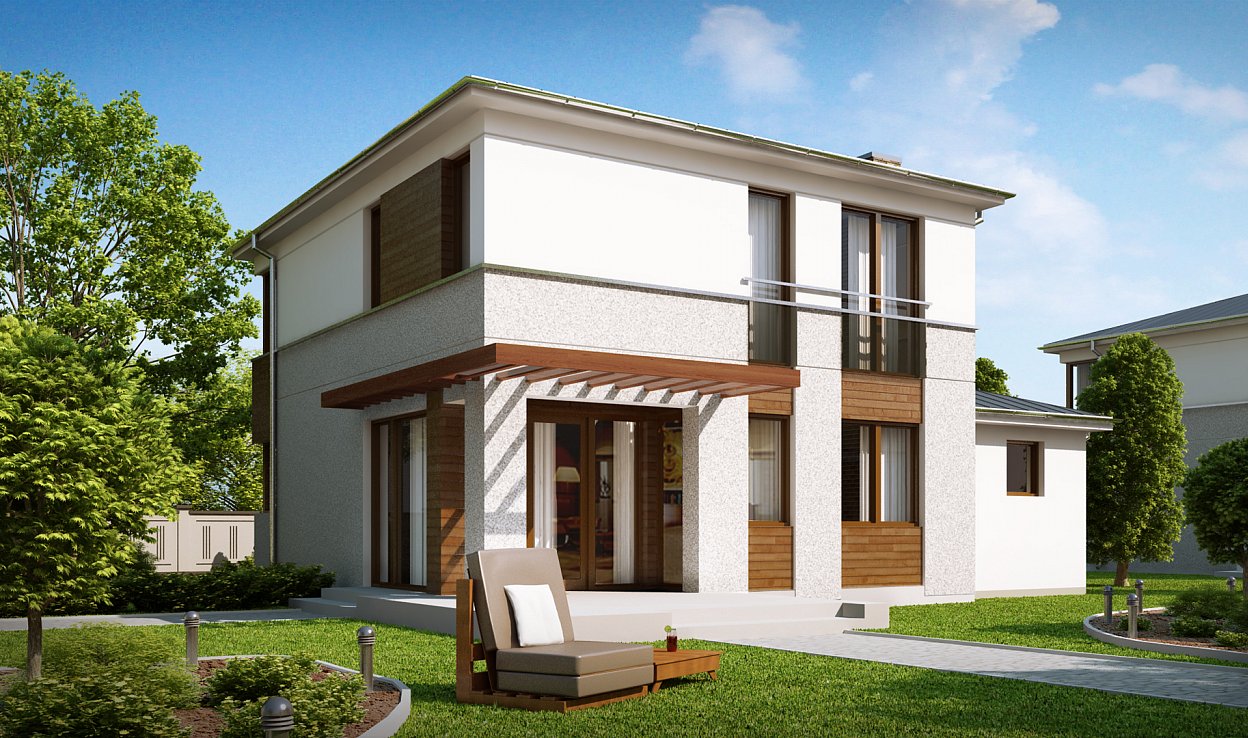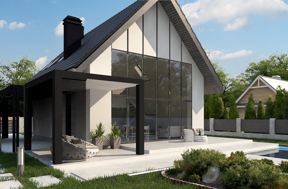 Проект практичного функционального дома современной отделкой фасада и дополнительной гостинной на мансарде.