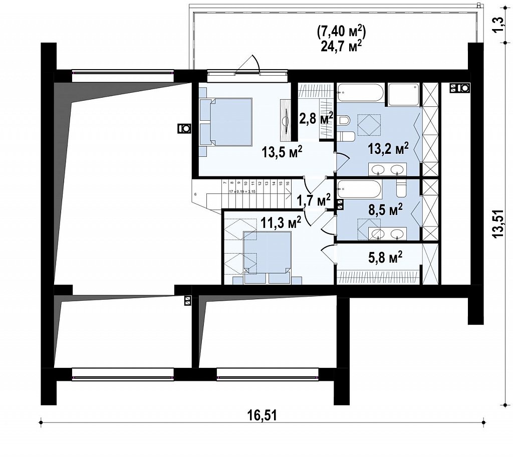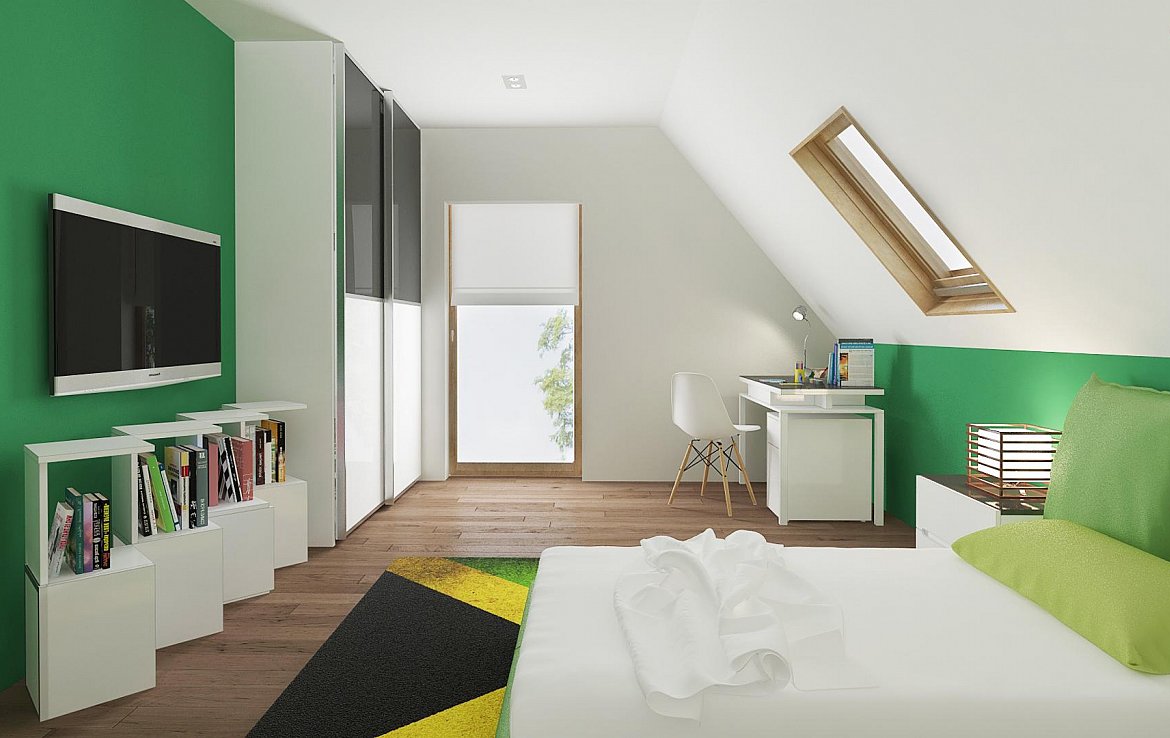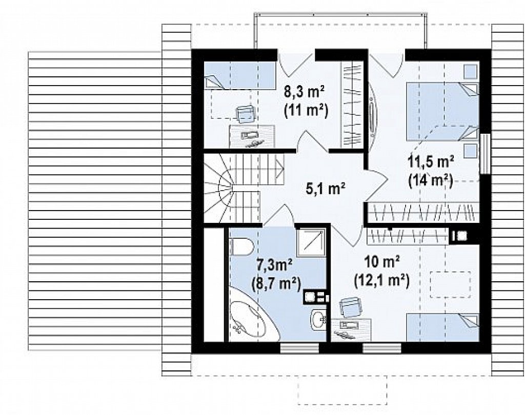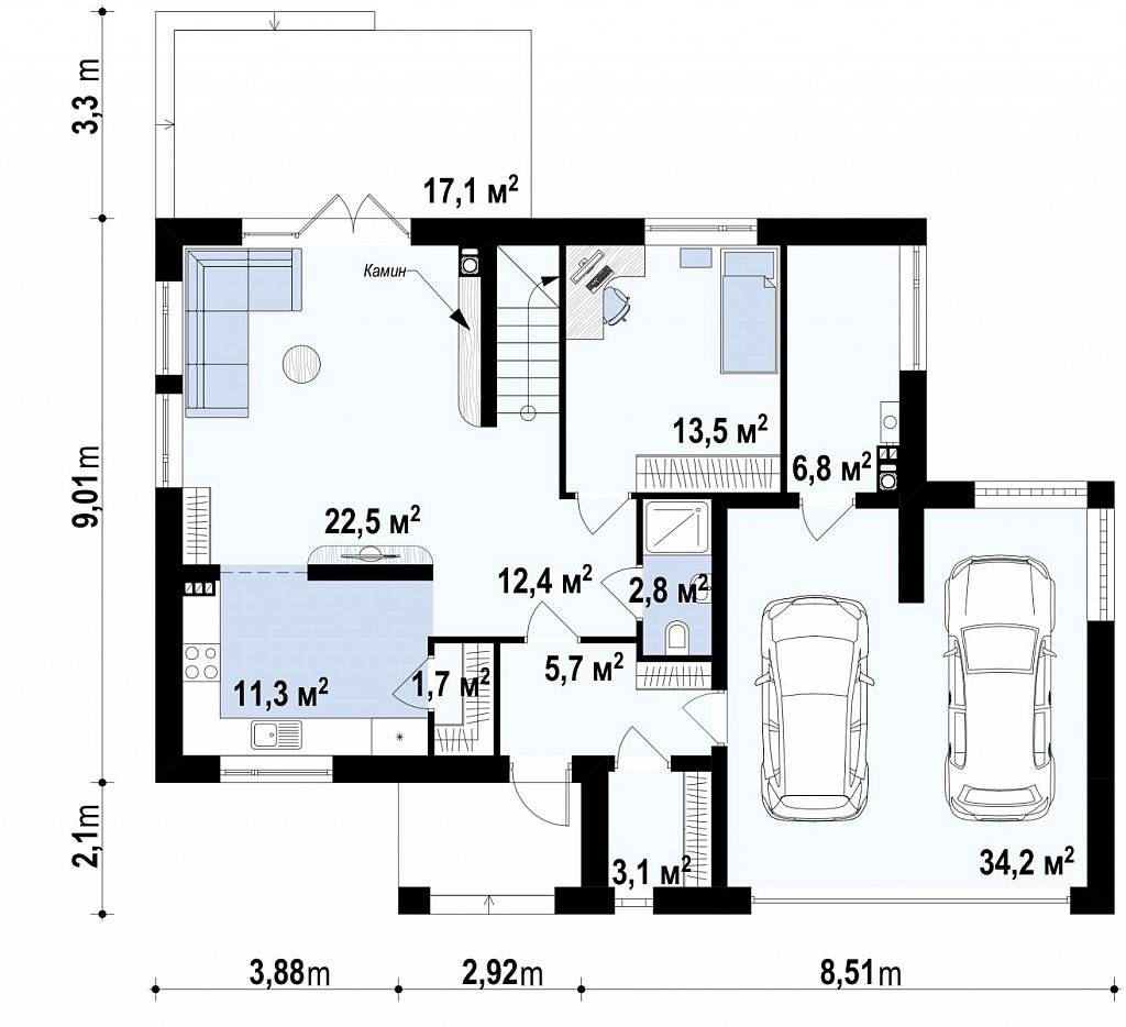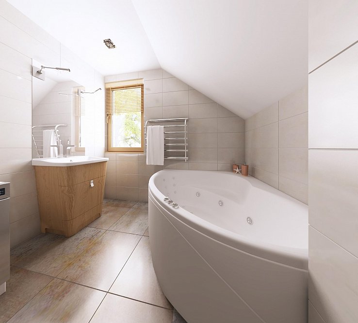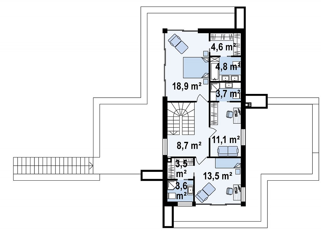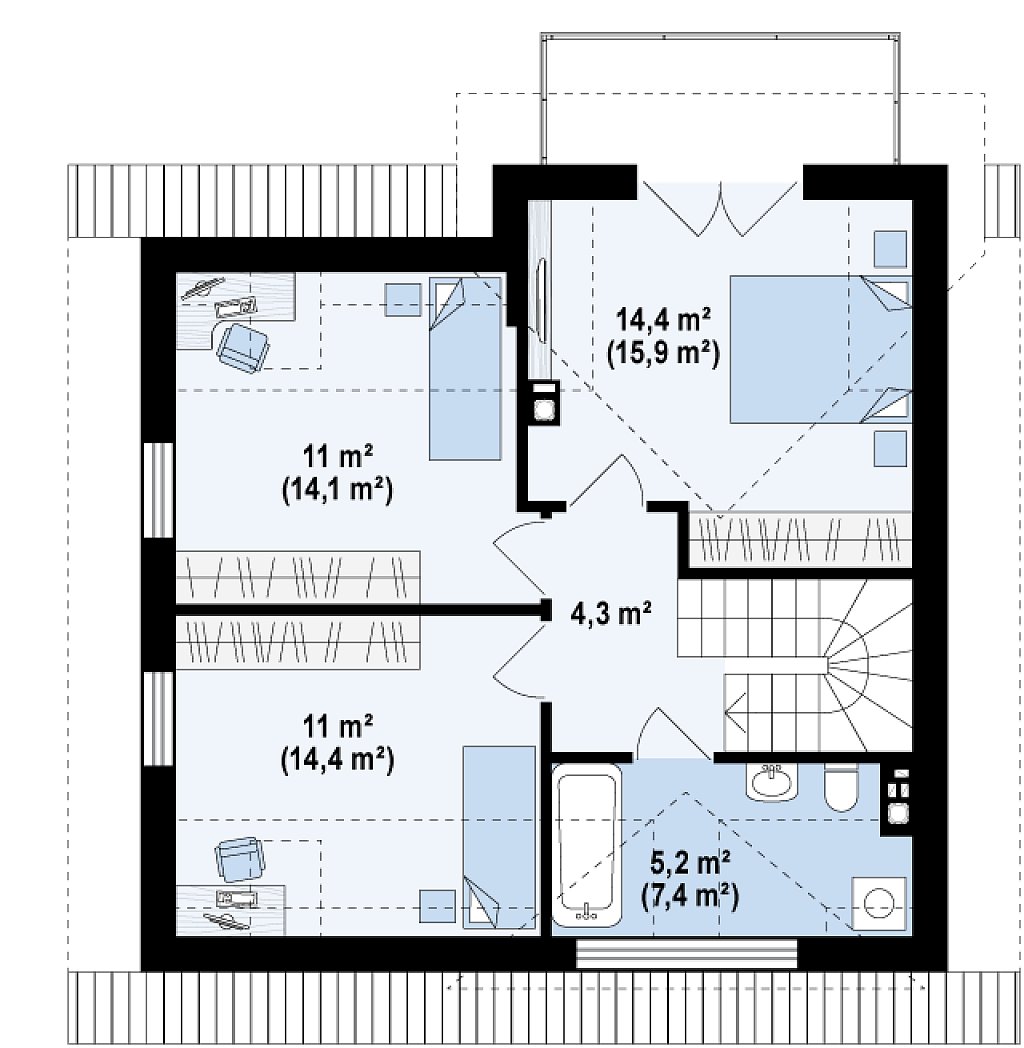 Проект практичного функционального дома современной отделкой фасада и дополнительной гостинной на мансарде.