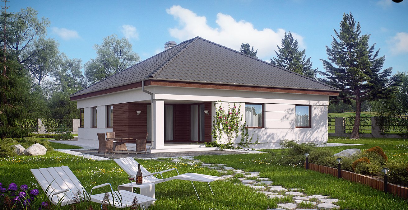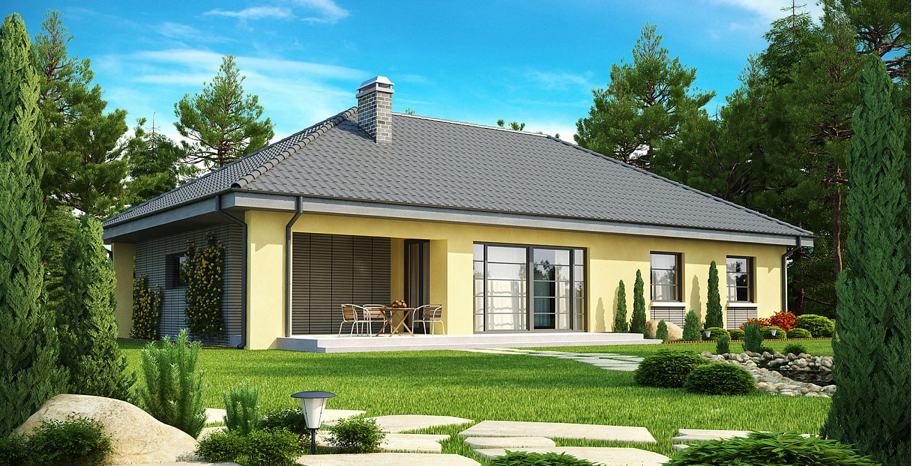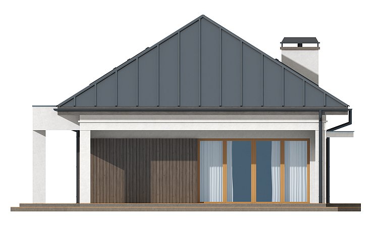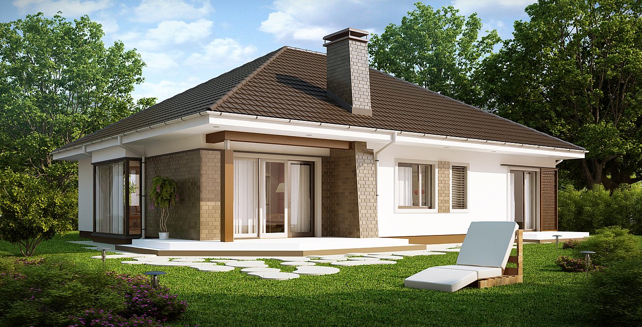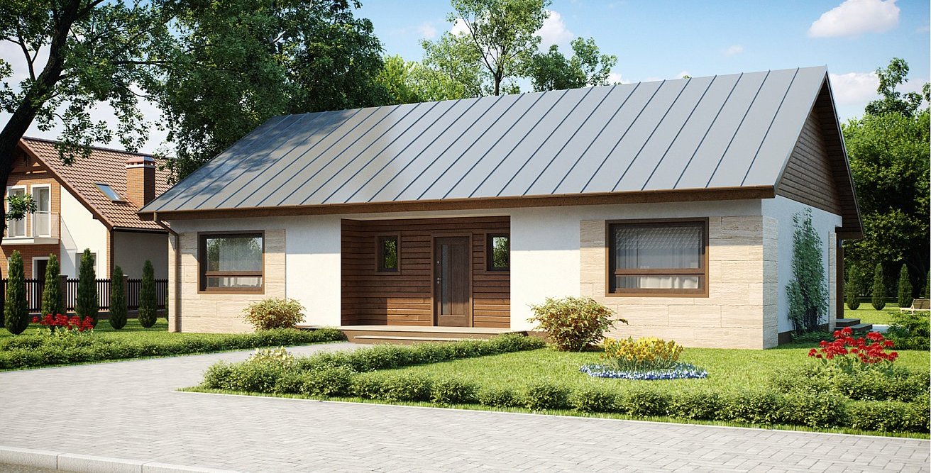 Данный проект представляет собой аккуратный небольшой одноэтажный дома простой конструкции с кухней со стороны сада.