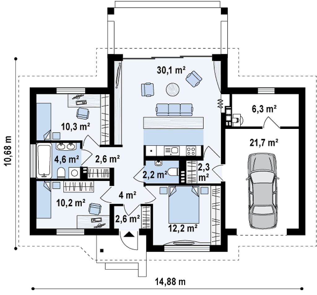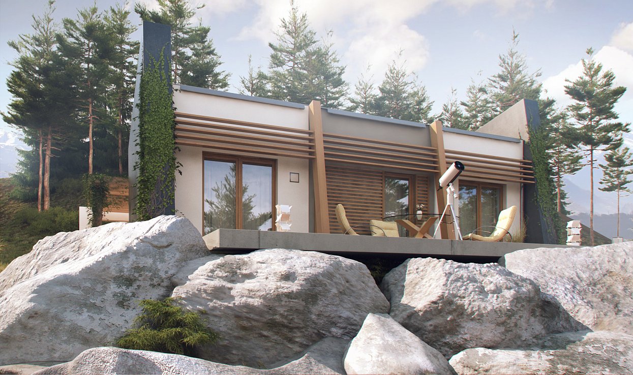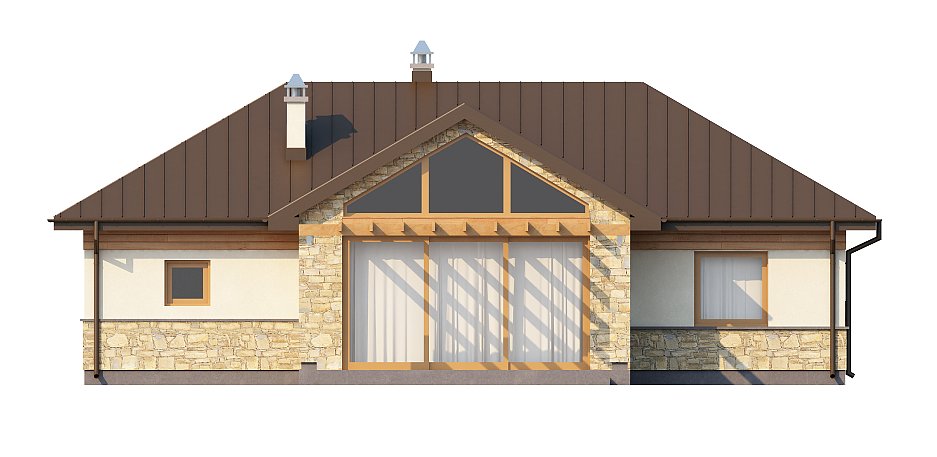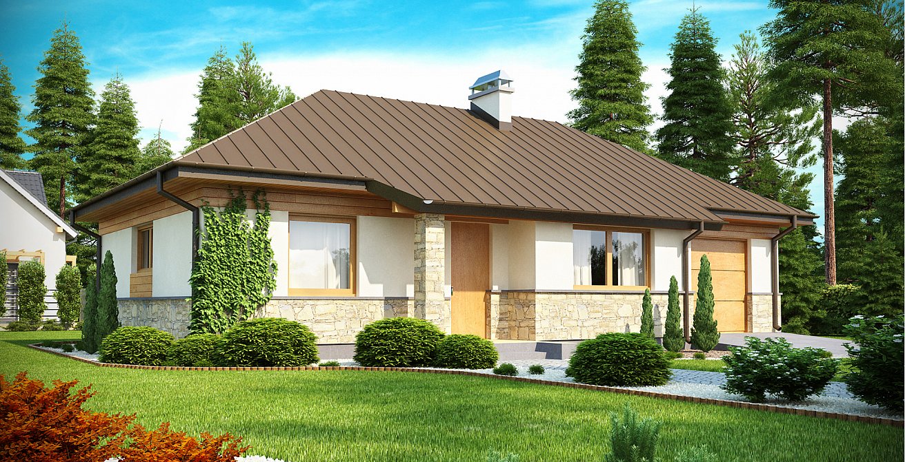 Данный проект представляет собой аккуратный небольшой одноэтажный дома простой конструкции с кухней со стороны сада.
