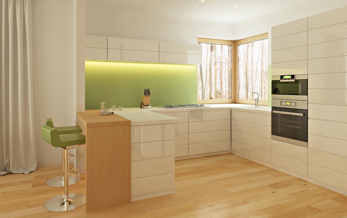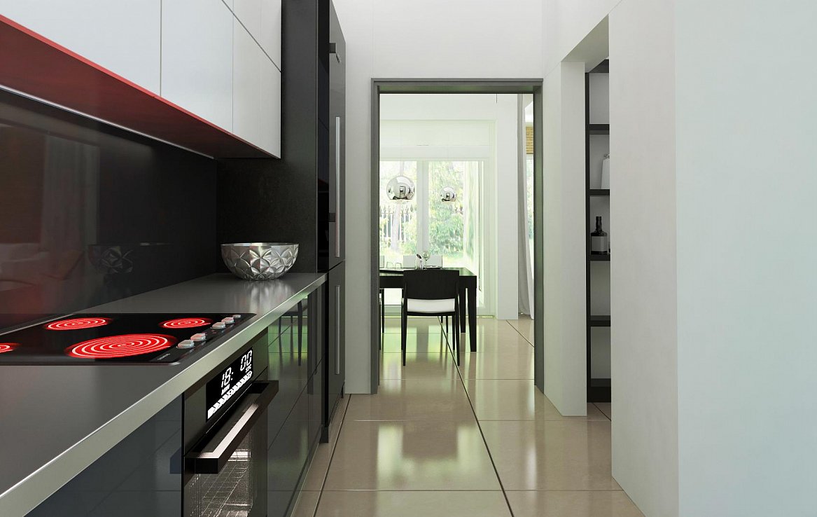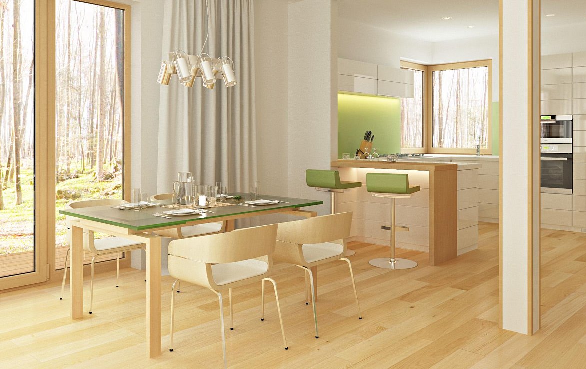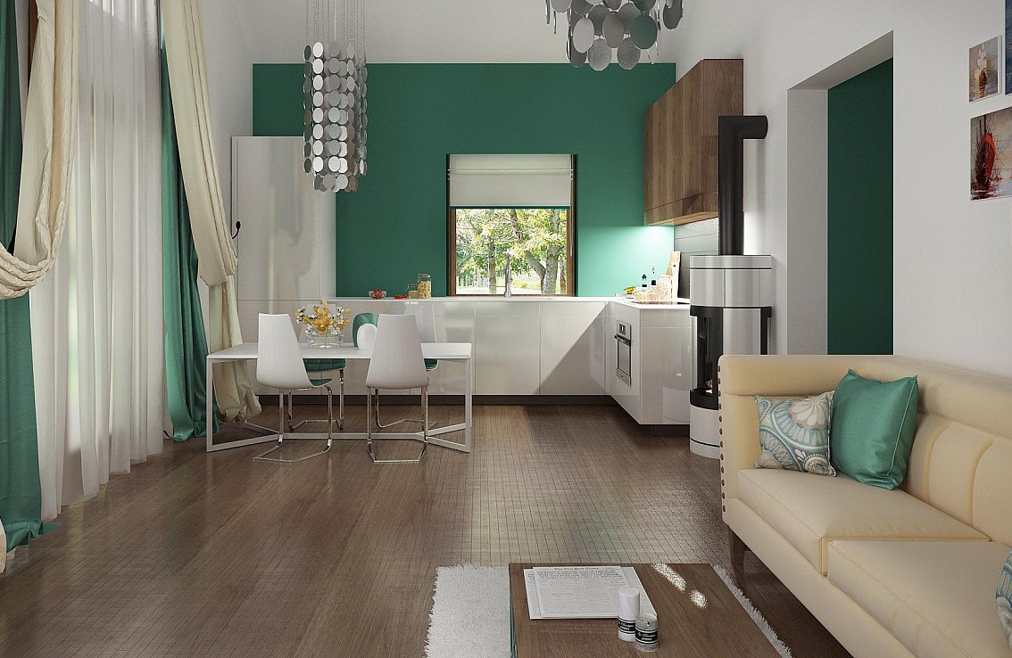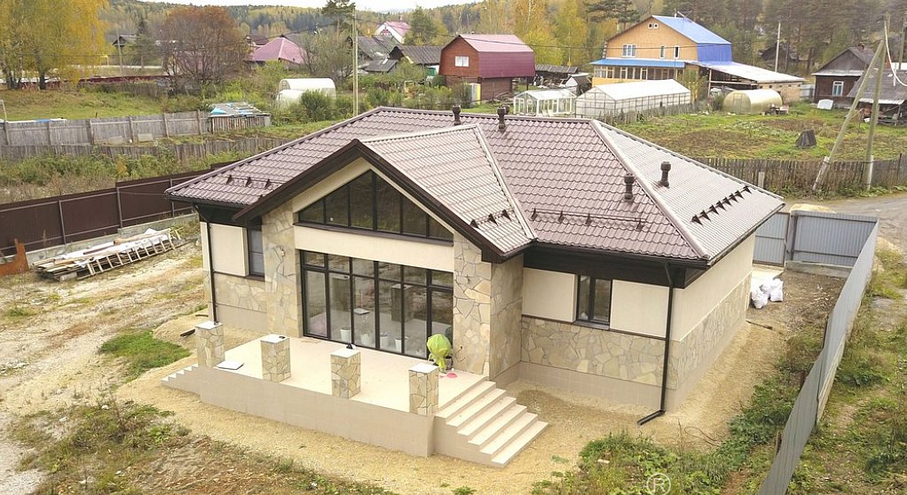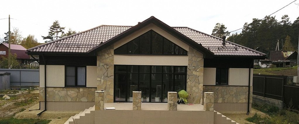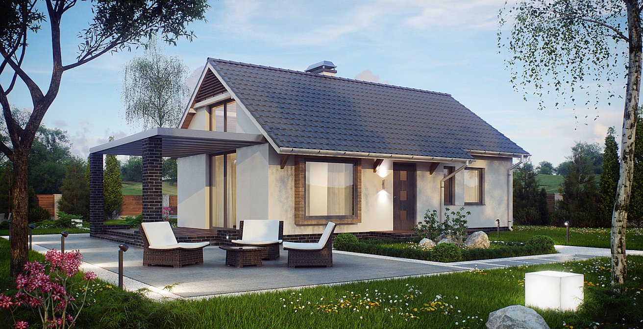 Аккуратный небольшой одноэтажный дом простой конструкции с кухней