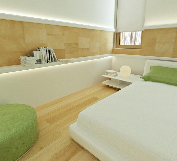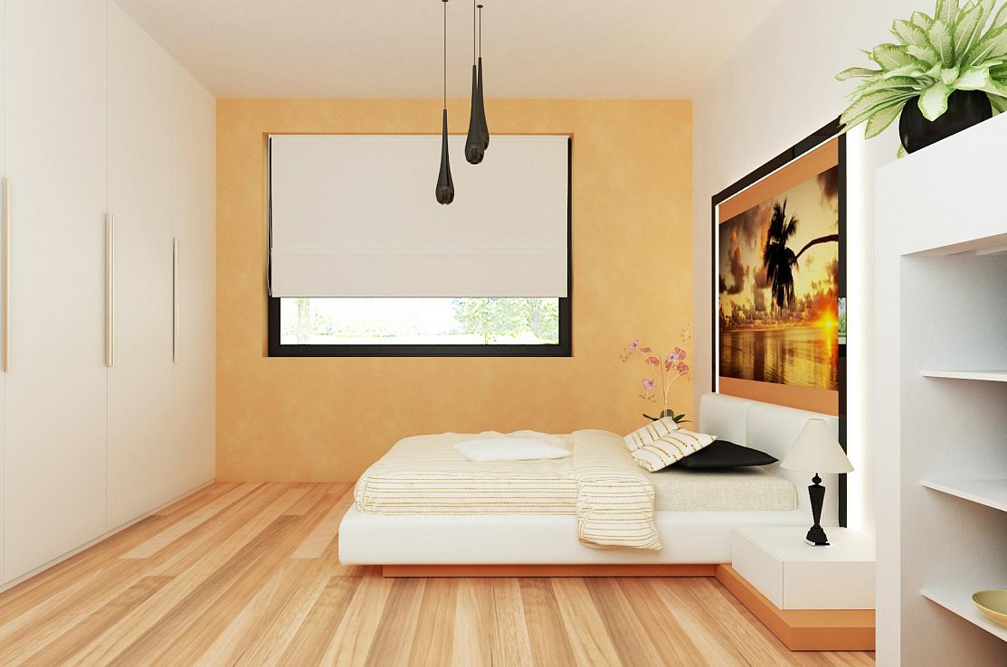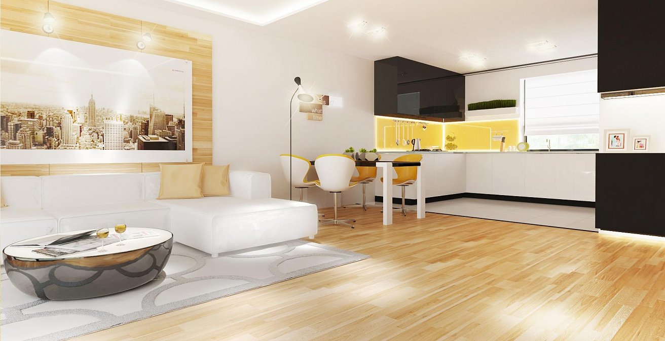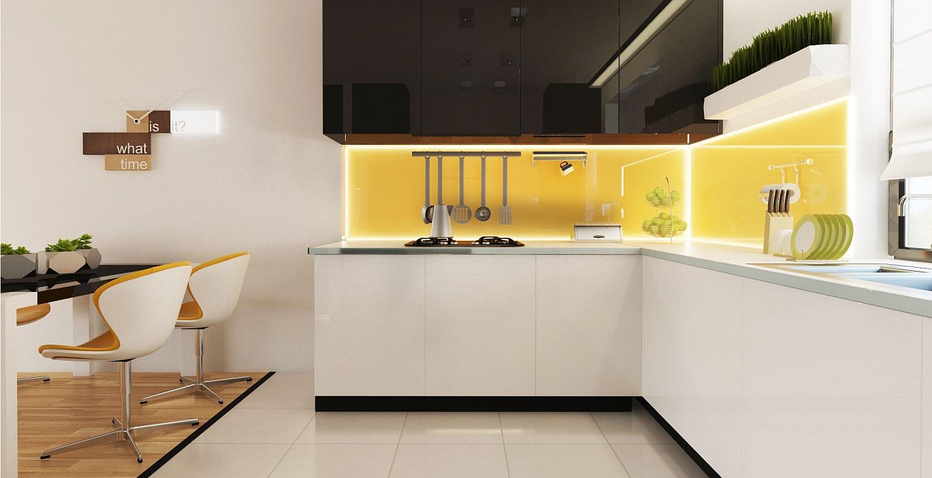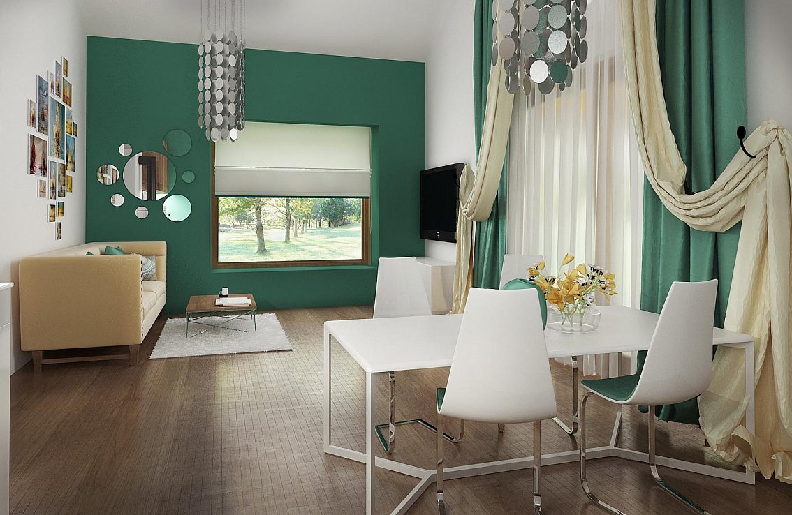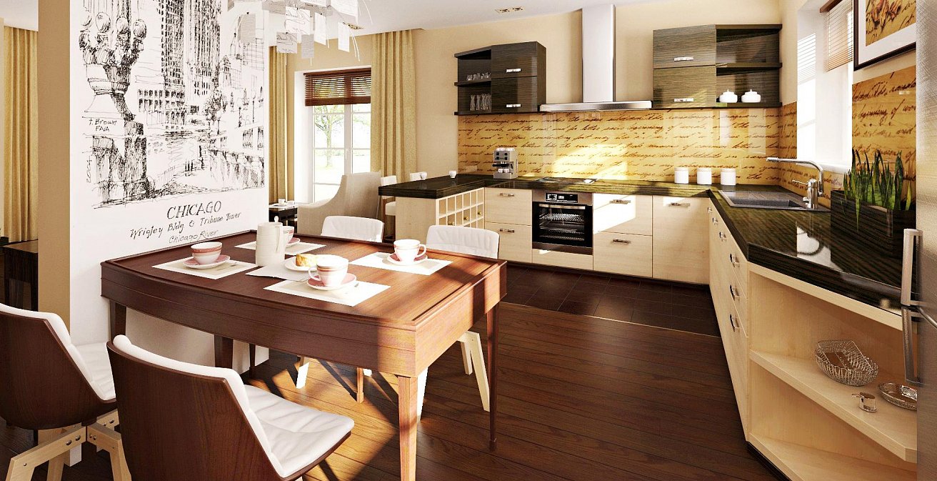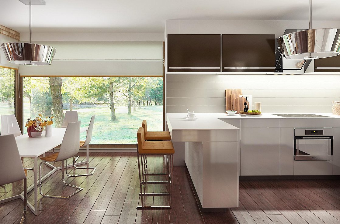 Аккуратный небольшой одноэтажный дом простой конструкции с кухней