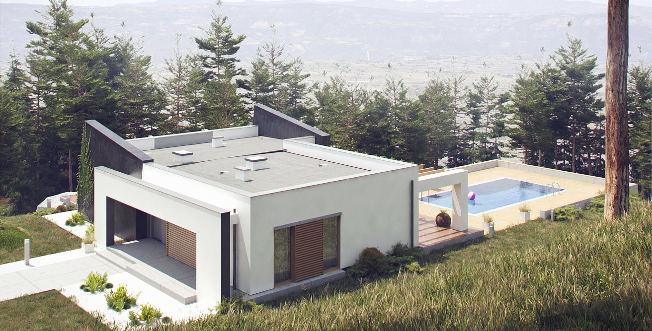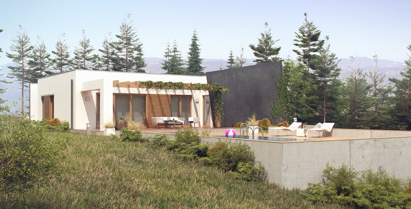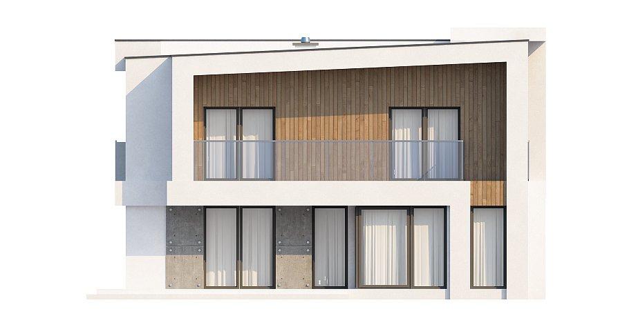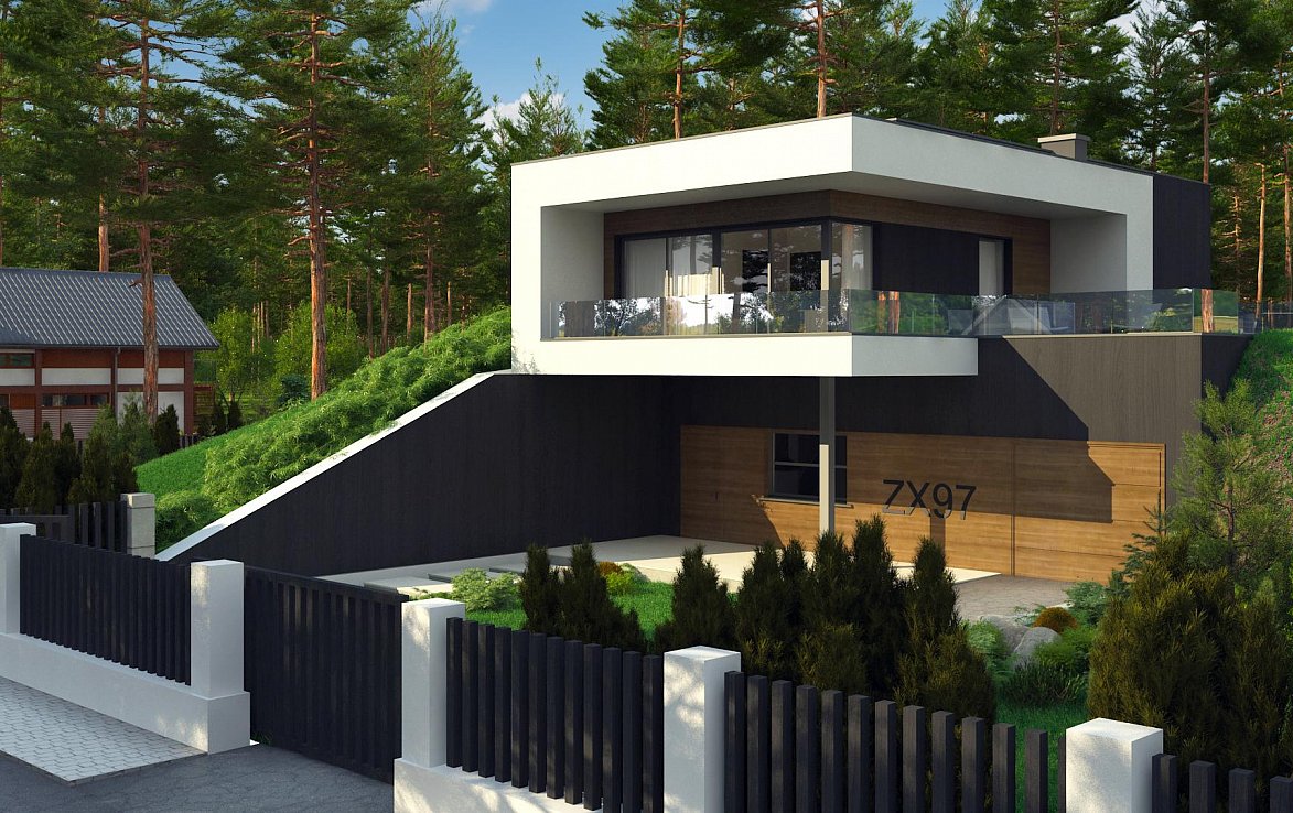 Данный проект представляет собой проект современного двухэтажного дома. Проект подойдет для строительства на участке со склоном. Это современный стильный дом, который идеально вольется как городской, так и загородный ландшафт.