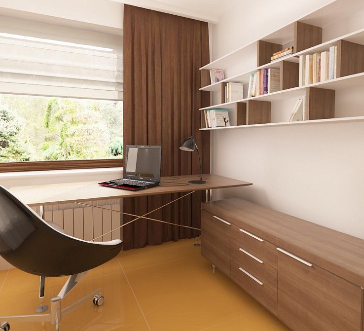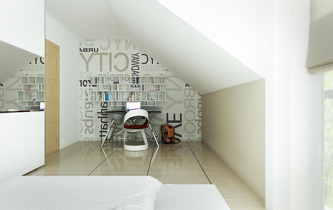 Проект представляет просторный дом современного дизайна с гаражом и кабинетом, устроенным на первом этаже.