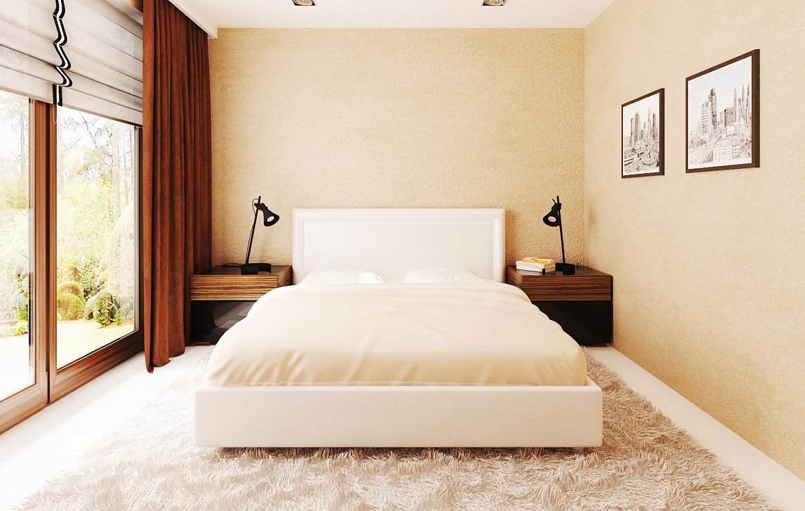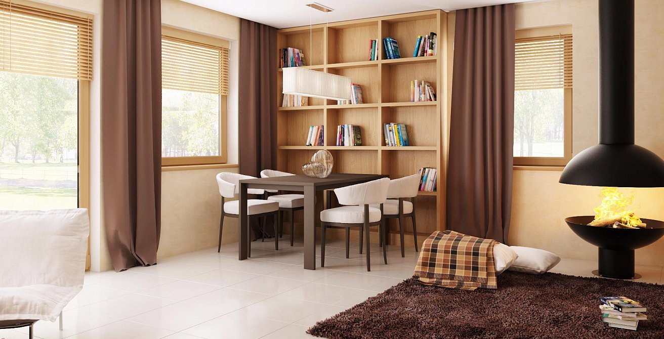 Проект выгодного одноэтажного дома с возможностью адаптации чердачного помещения. Интерьер хорошо продуманный, функциональный и уютный. А сочетание бежевых и коричневых оттенков на фасадах, лаконичный стиль дизайна придают дому тёплый и спокойный характер.
