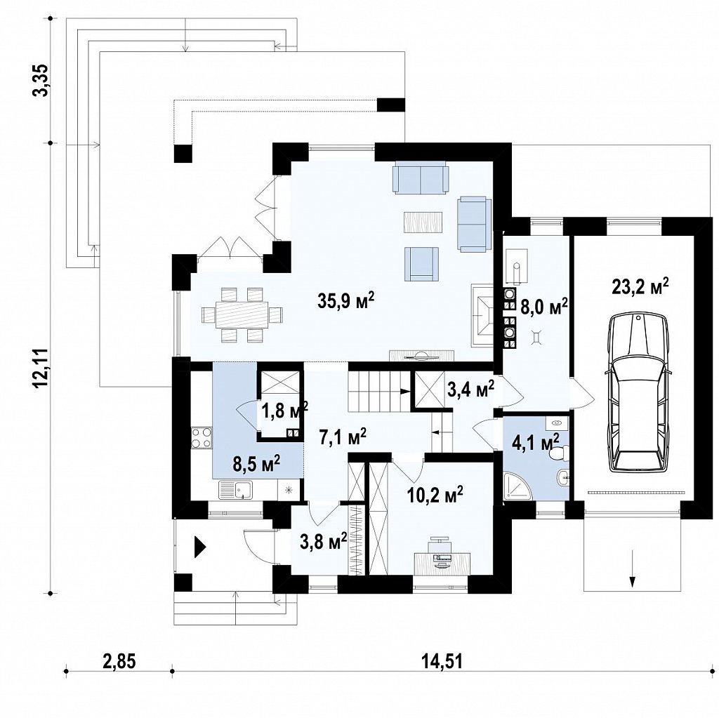 Идеальный проект для сторонников домов в европейском стиле и удобной грамотной планировкой пространства.