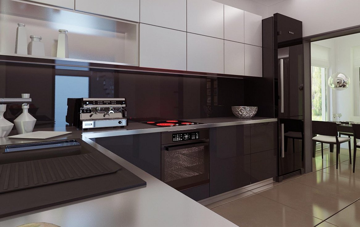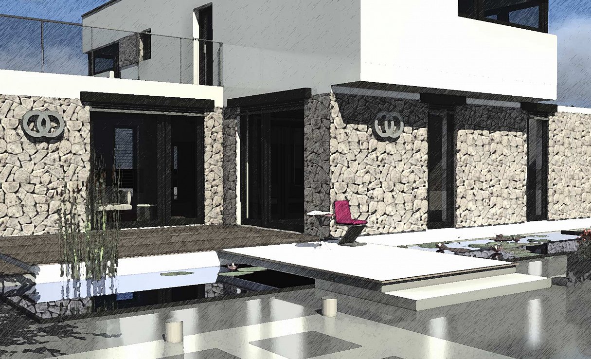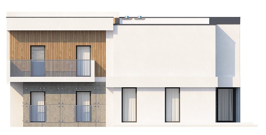 Данный проект представляет собой современный элегантный дом с гостиной, расположенной с фронтальной стороны. Роскошный экстерьер здания невероятно привлекателен благодаря удачным архитектурным находкам, которые сливаются в общий гармоничный ансамбль. Террасы первого и второго уровня, вынесенные к фронтальной плоскости. связывают все детали в единое целое.