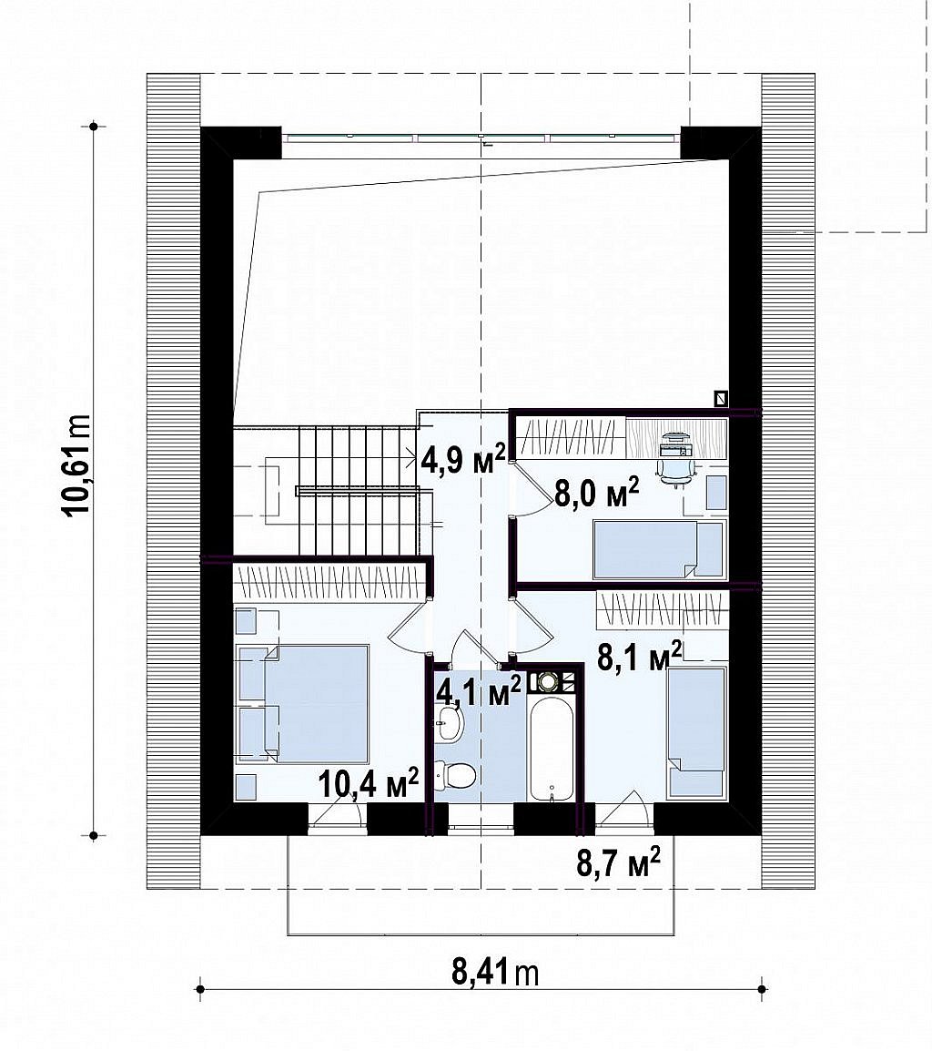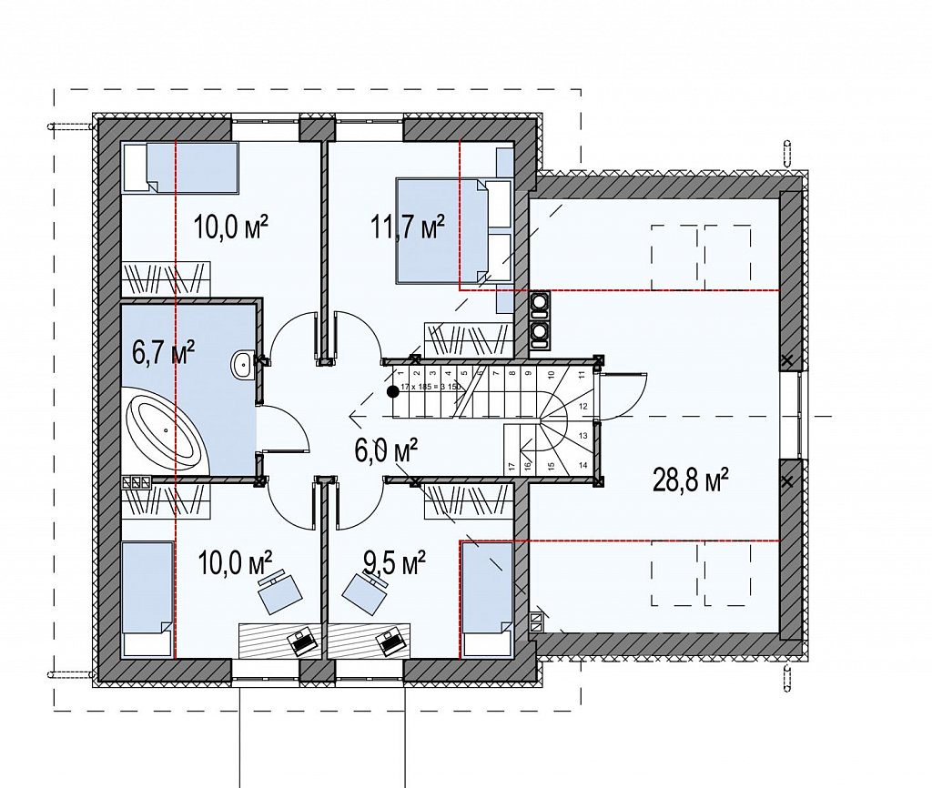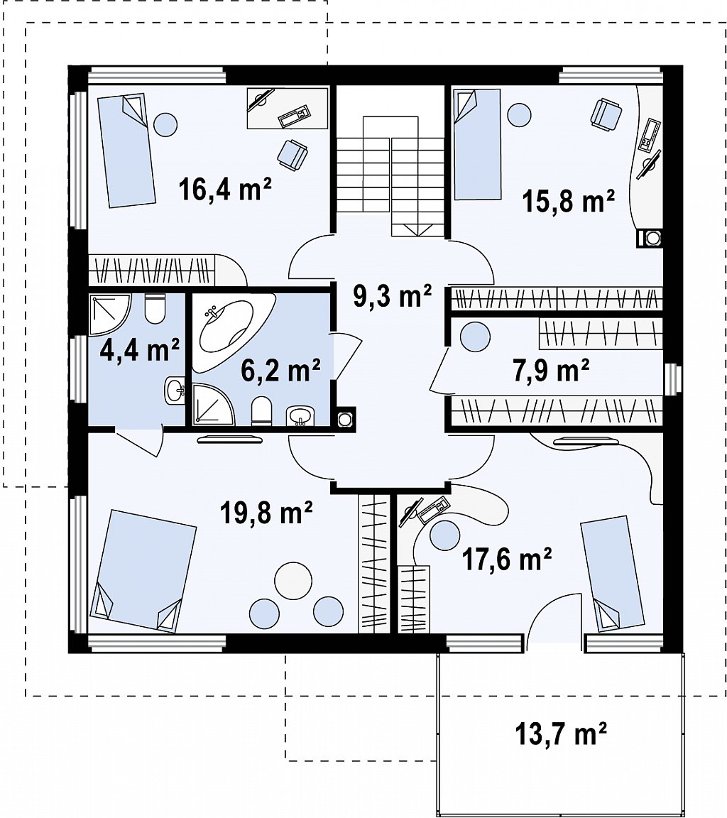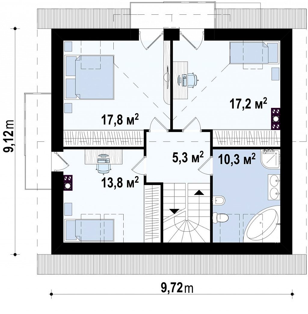 Если дом для Вас тесноват, мы сможем его увеличить, в результате Вы получите проект квадратного дома 8х8 м, или других габаритов.