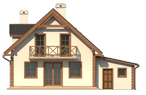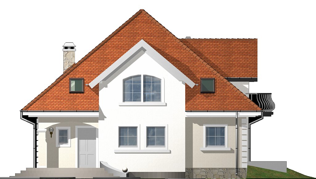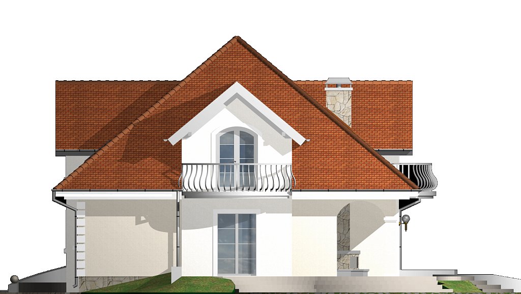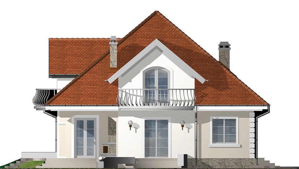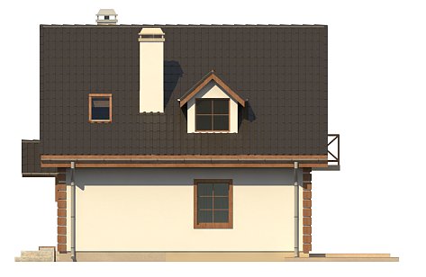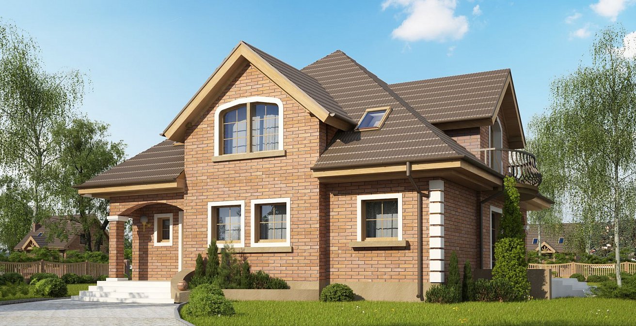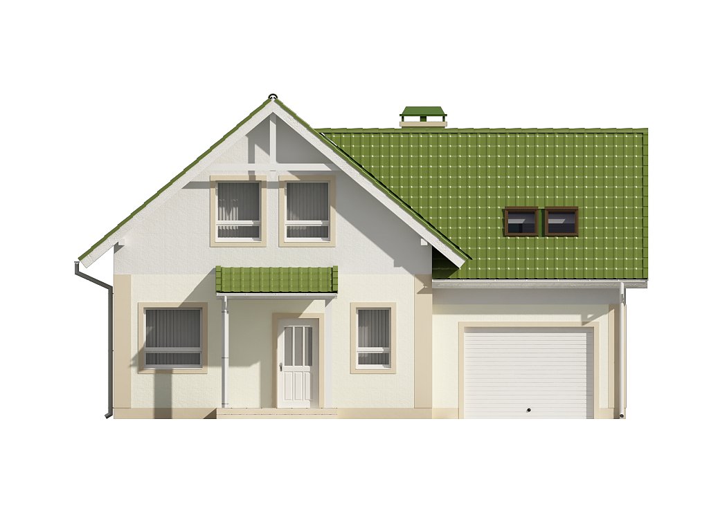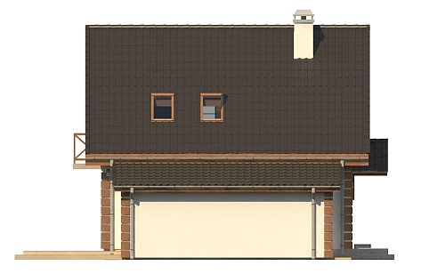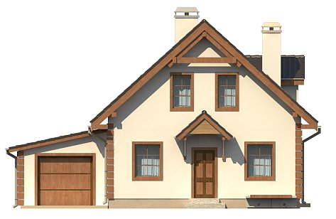 Проект представляет собой очаровательный и практичный дом с мансардой в традиционном стиле и гаражом. Он подкупает своим домашним, «теплым» дизайном, а уютное мансардное окно, характерное оформление балкона и окон еще больше усиливают это настроение. Впрочем, и остальные характеристики дома имеют целый ряд достоинств.
