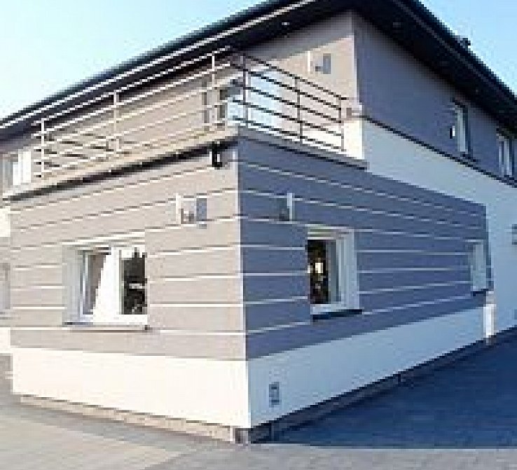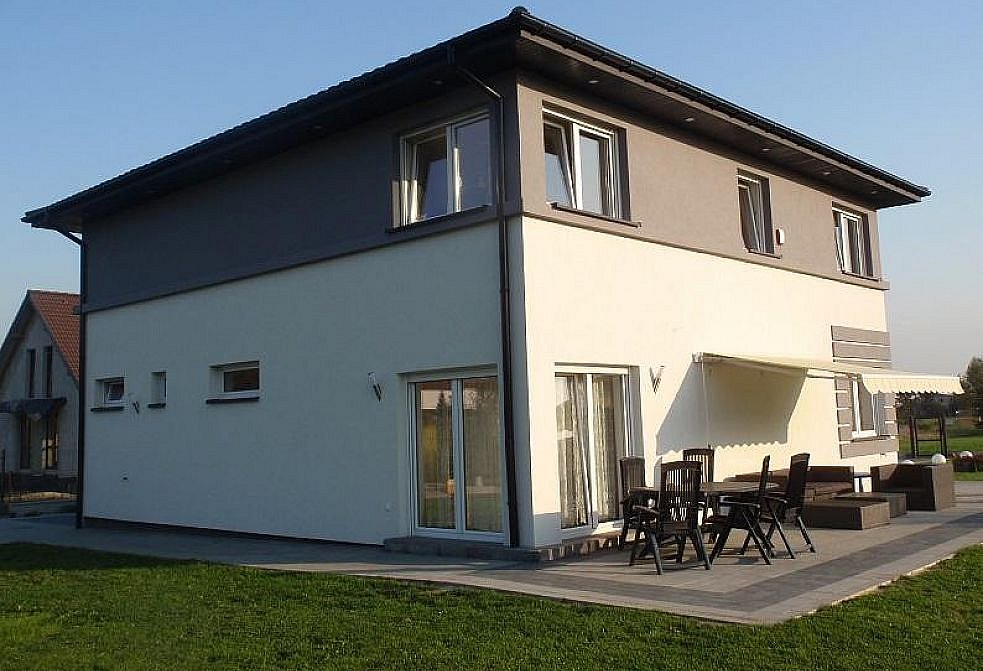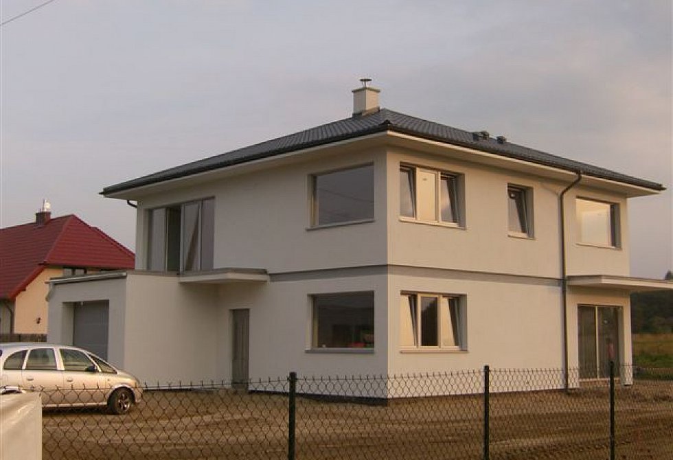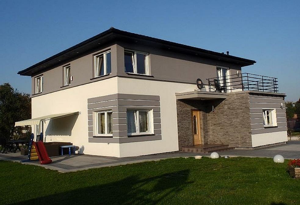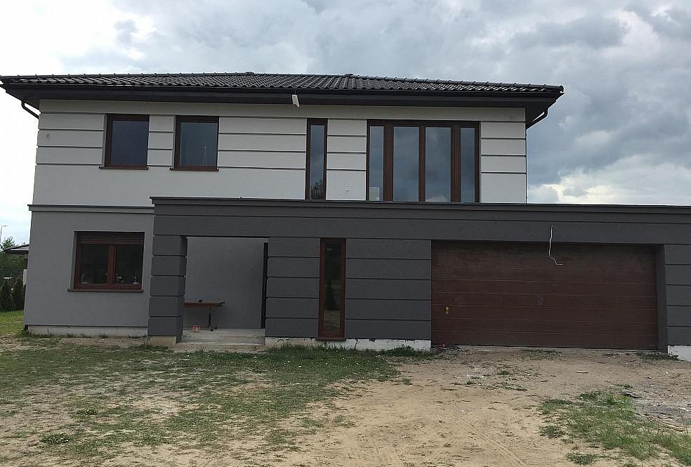 Комфортабельный дом с двумя этажами, гаражом и стильным фасадом