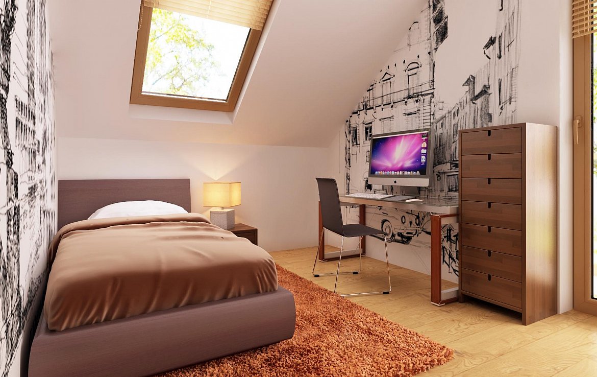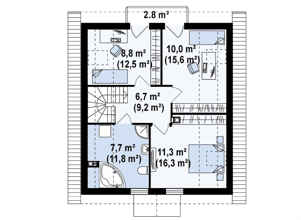 Проект современного, комфортного, компактного и недорогого мансардного дома с оригинальной планировкой.
