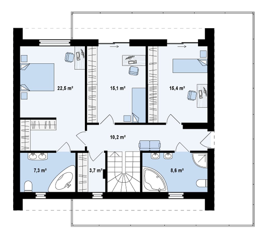 Элегантный классический дом с изящными мансардными окнами и балконами удивляет своими эффективным, характерным внешним видом, изысканным и благородным характером. Его интерьер не менее привлекателен благодаря функциональной комфортной планировке.