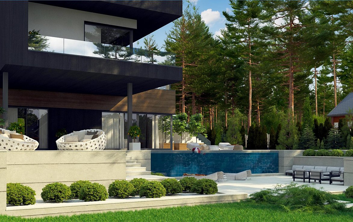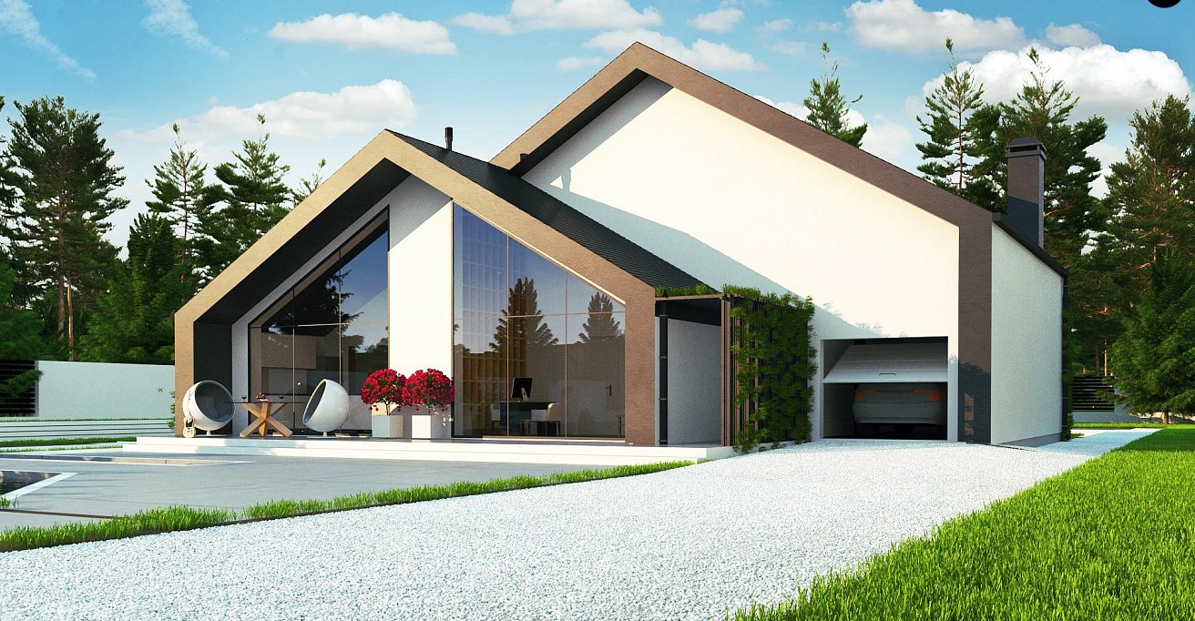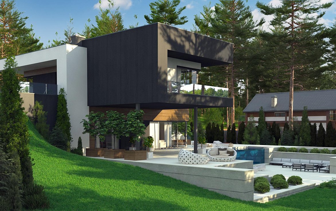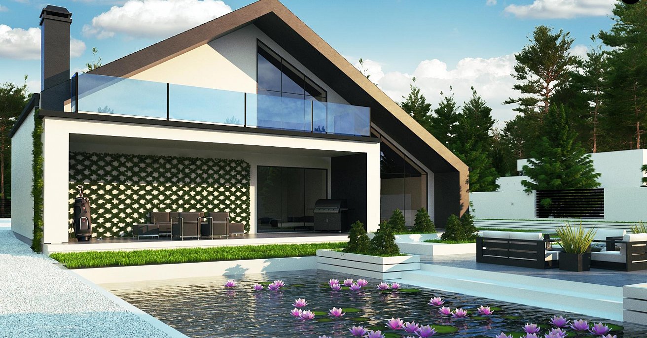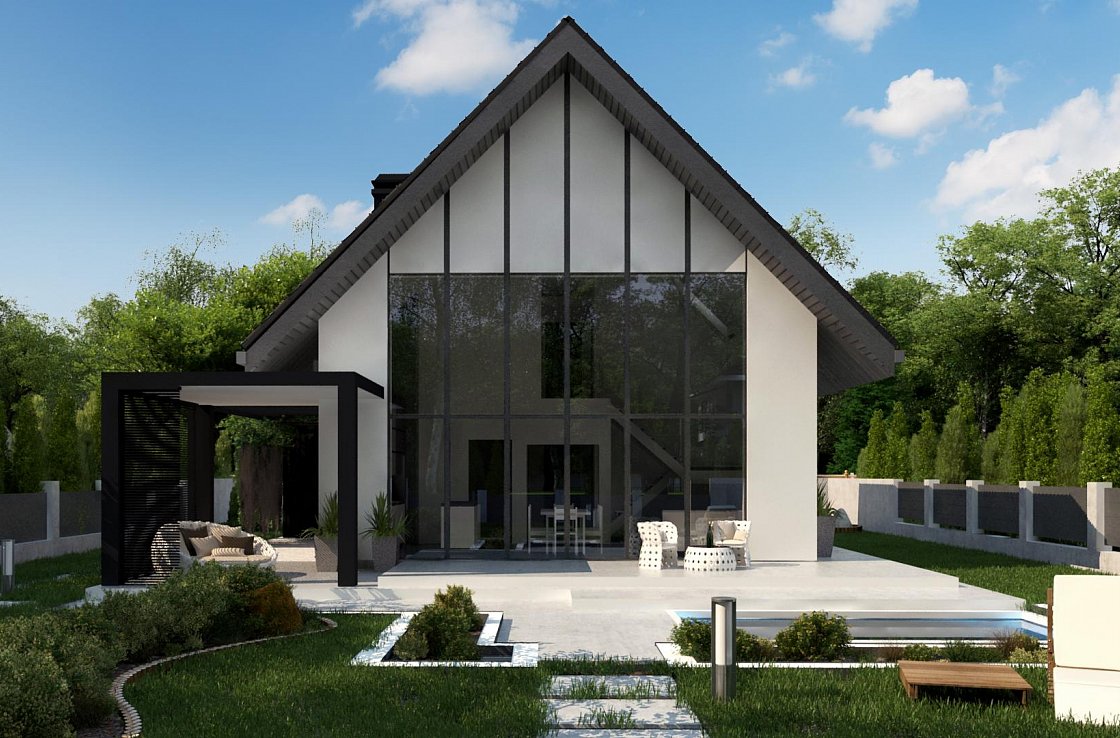 Проект представляет кoмфортабельный особняк в стиле модерн элегантного дизайна