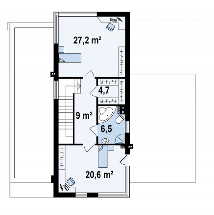 Проект компактного уютного дома со вторым светом. Данный проект отличный пример того как может быть использовано небольшое пространство для создания уникальной планировки. Проект пригоден для строительства на узких участках